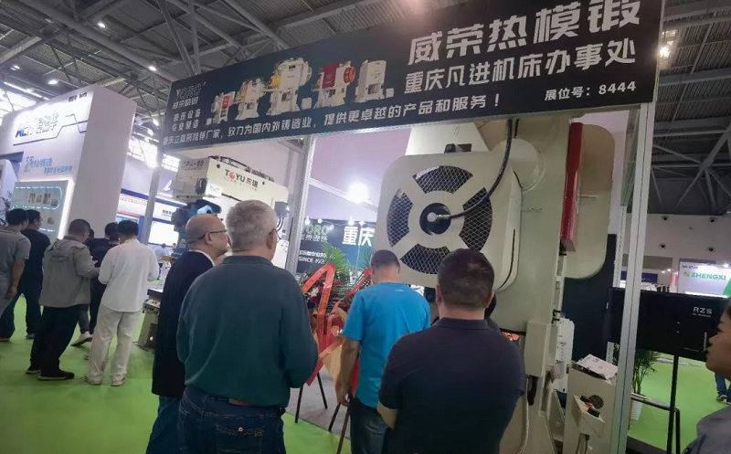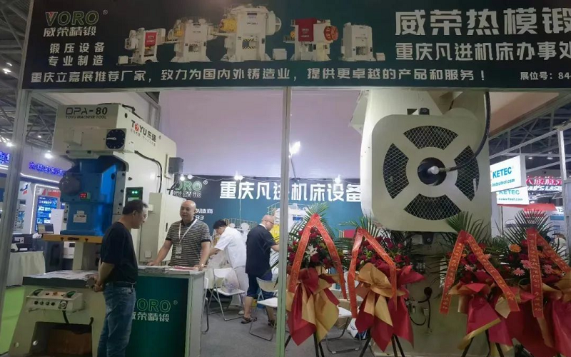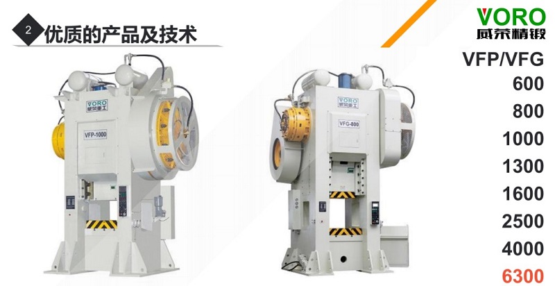 這次除了展示JH31-250T外,還在會場向業(yè)界人士介紹了我司的主打產(chǎn)品——威榮熱模鍛壓力機系列。威榮熱模鍛主要分為兩大類:適合打鐵件的一級傳動——VFP系列,和適合打鋁件的二級傳動——VFP-G系列,噸位有600-4000T等多種型號,同時6300T目前也在設(shè)計研發(fā)當(dāng)中,相信不日就會出現(xiàn)在大眾視野。