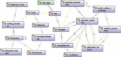 建立“Processes”"Forging_processes"類作為橋梁來(lái)連接熱模鍛成形的各個(gè)要素,熱模鍛成形過(guò)程本體模型如圖16所示。在上述模型的基礎(chǔ)上,形成如圖17所示的金屬熱模鍛完整本體模型,包含了事實(shí)性知識(shí)和過(guò)程性知識(shí)的基本類、對(duì)象屬性和數(shù)據(jù)屬性。