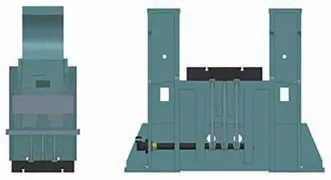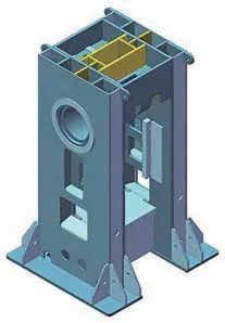 壓力機(jī)機(jī)架結(jié)構(gòu)如圖20所示,機(jī)身間距相比一般壓力機(jī)得到了加寬,更方便實(shí)現(xiàn)多工位布局,且能加入操控性更強(qiáng)的大重量曲軸,使得設(shè)備能力更大。設(shè)備主板得到了加強(qiáng),整體剛性高于國(guó)家標(biāo)準(zhǔn)3倍.提高了加工精度與使用壽命。設(shè)備參考MP型輕型機(jī)的設(shè)計(jì),將壓力角增大到20°:同時(shí),該設(shè)備采用了多層摩擦片結(jié)構(gòu),增大離合器扭矩,有效提高了打擊力。此外,該設(shè)備還考慮了鍛件在生產(chǎn)過(guò)程中溫度變低和工人操作間隔時(shí)間不一致導(dǎo)致噸位異常超出的情況,進(jìn)行了特殊設(shè)計(jì)。