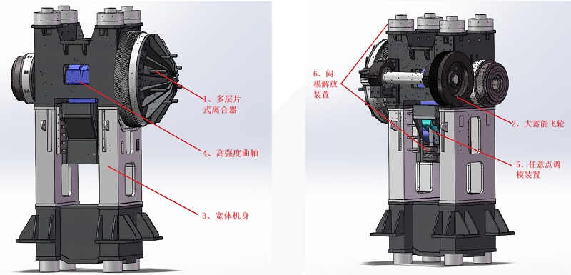 演講末尾,著重介紹了產(chǎn)品特點(diǎn),如:采用多片式離合器、飛輪儲(chǔ)能大、擁有超過(guò)同噸位機(jī)器的沖壓能力、曲軸和機(jī)身加大加粗、機(jī)身變形量少等。